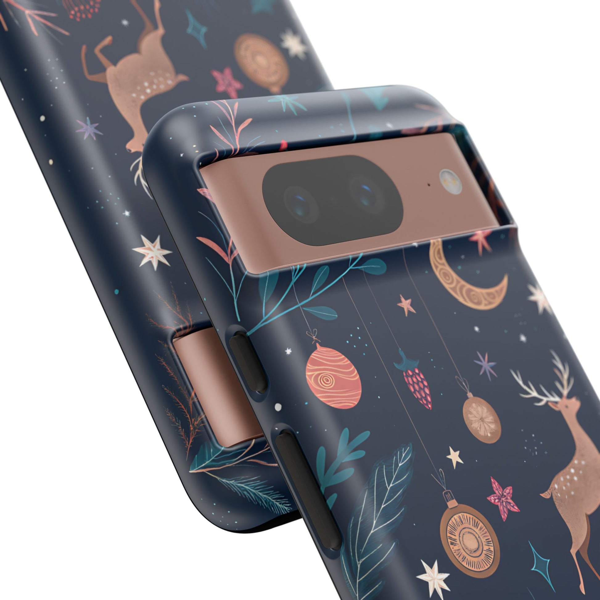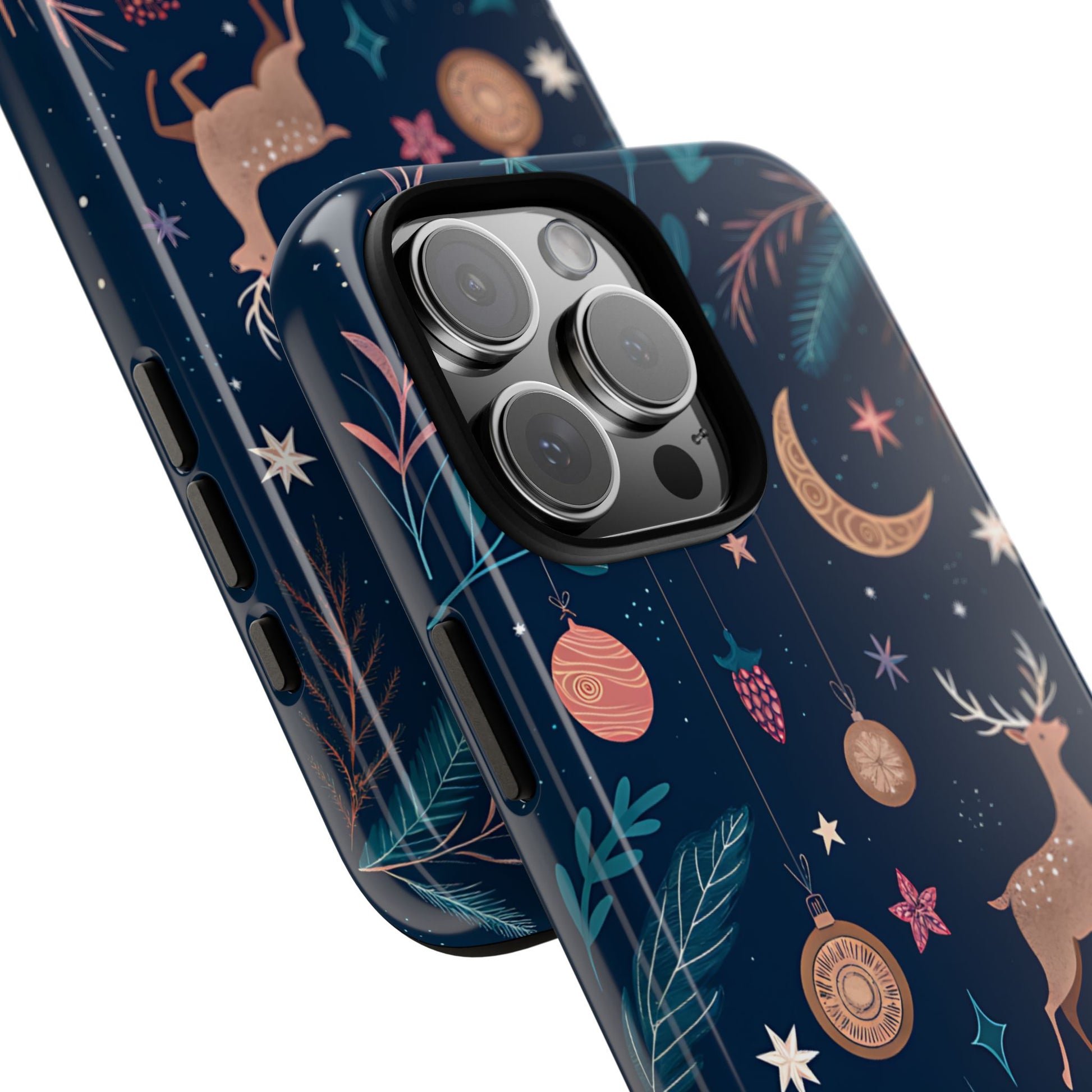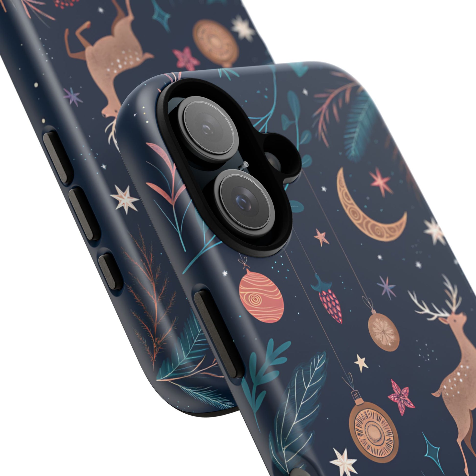 🦌 Celebrate the holidays in style with our Boho Christmas Reindeer Phone Case — a beautifully detailed design featuring a graceful reindeer under a starry night sky, surrounded by ornaments, holly, and winter foliage. The deep navy background and warm copper accents create a magical, cozy aesthetic perfect for the season. 🌟
