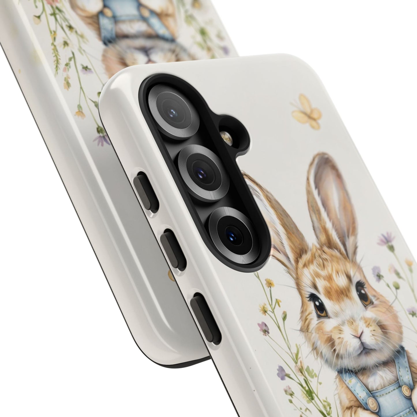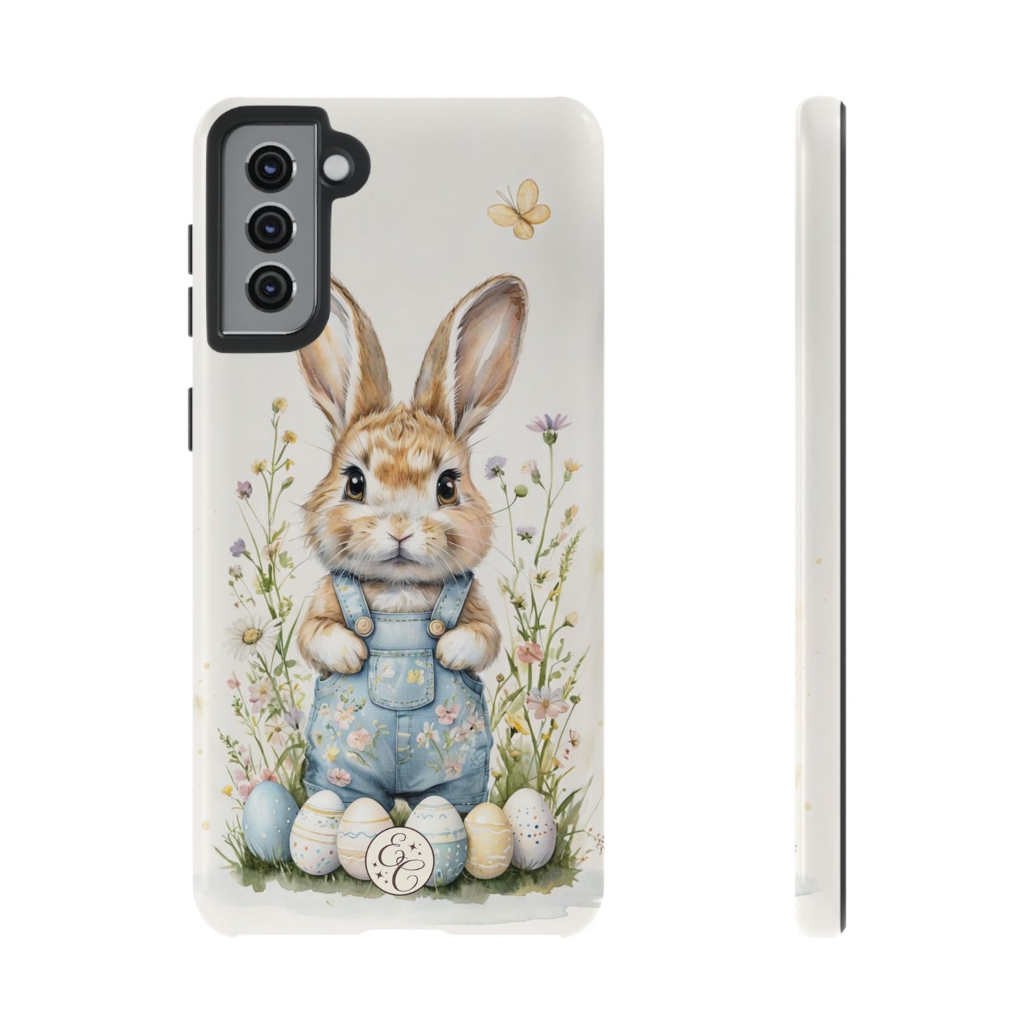🐰✨ Adorable watercolor artwork of a bunny in denim overalls surrounded by Easter eggs and delicate flowers. This charming design is perfect for adding a touch of springtime joy to your phone case. Embrace the Easter spirit with this lovely illustration! 🌸🥚🐇