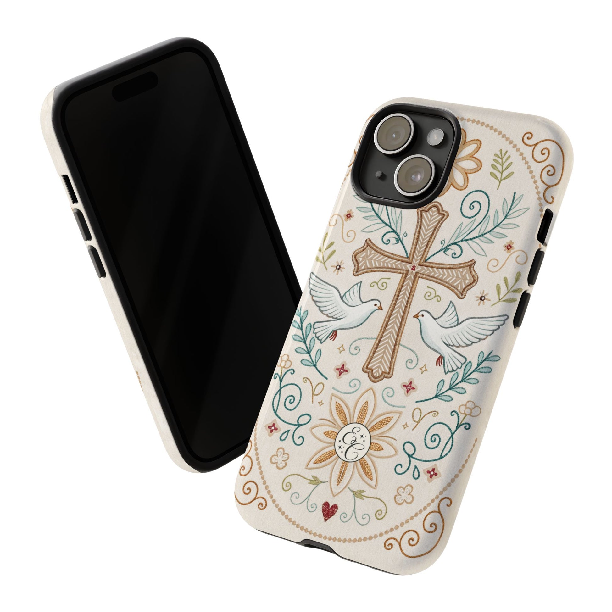 🙏 Express your faith with the Christian Cross & Doves Tough Phone Case by EnchantCase 🕊