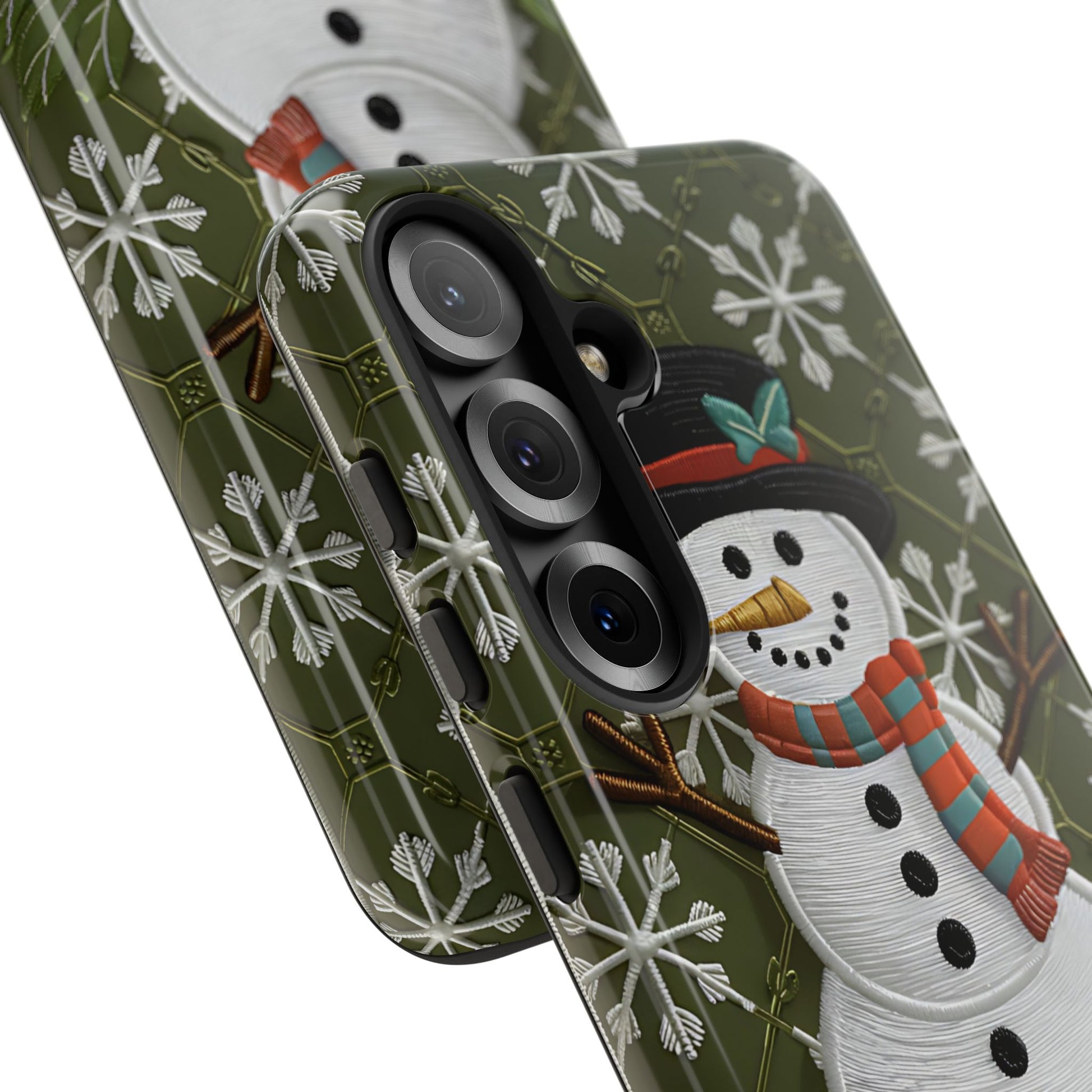 🎄❄️ Bring the joy of winter to your everyday style with this Christmas Snowman Tough Phone Case, designed with a charming snowman wearing a striped scarf and top hat set against a festive snowflake pattern. This cheerful holiday design blends classic Christmas warmth with a playful winter aesthetic—perfect for the season! ☃️🌟