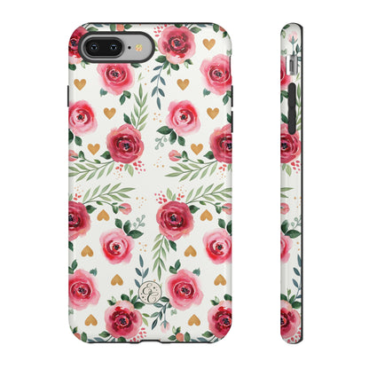 Hearts & Roses Watercolor Pattern Tough Phone Case