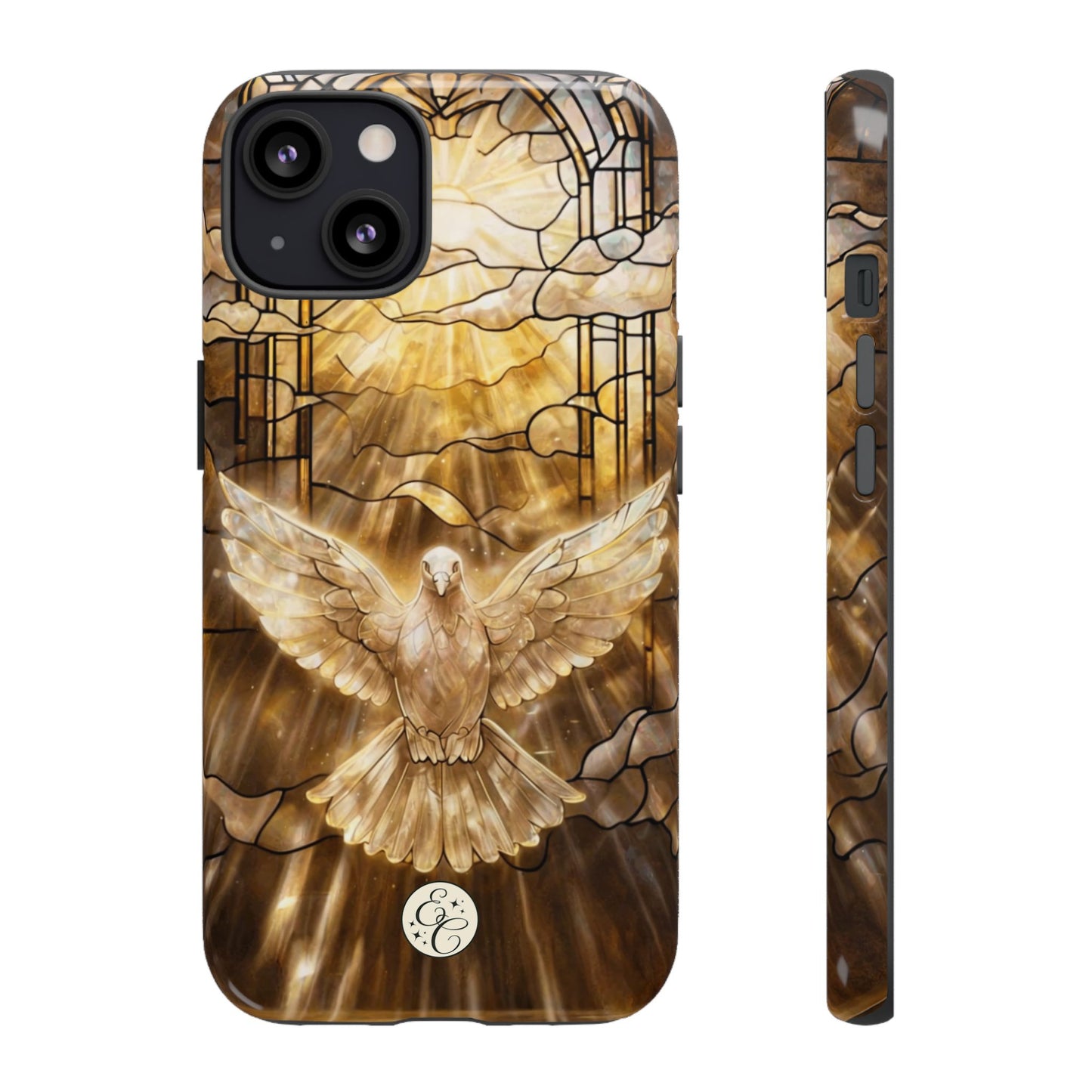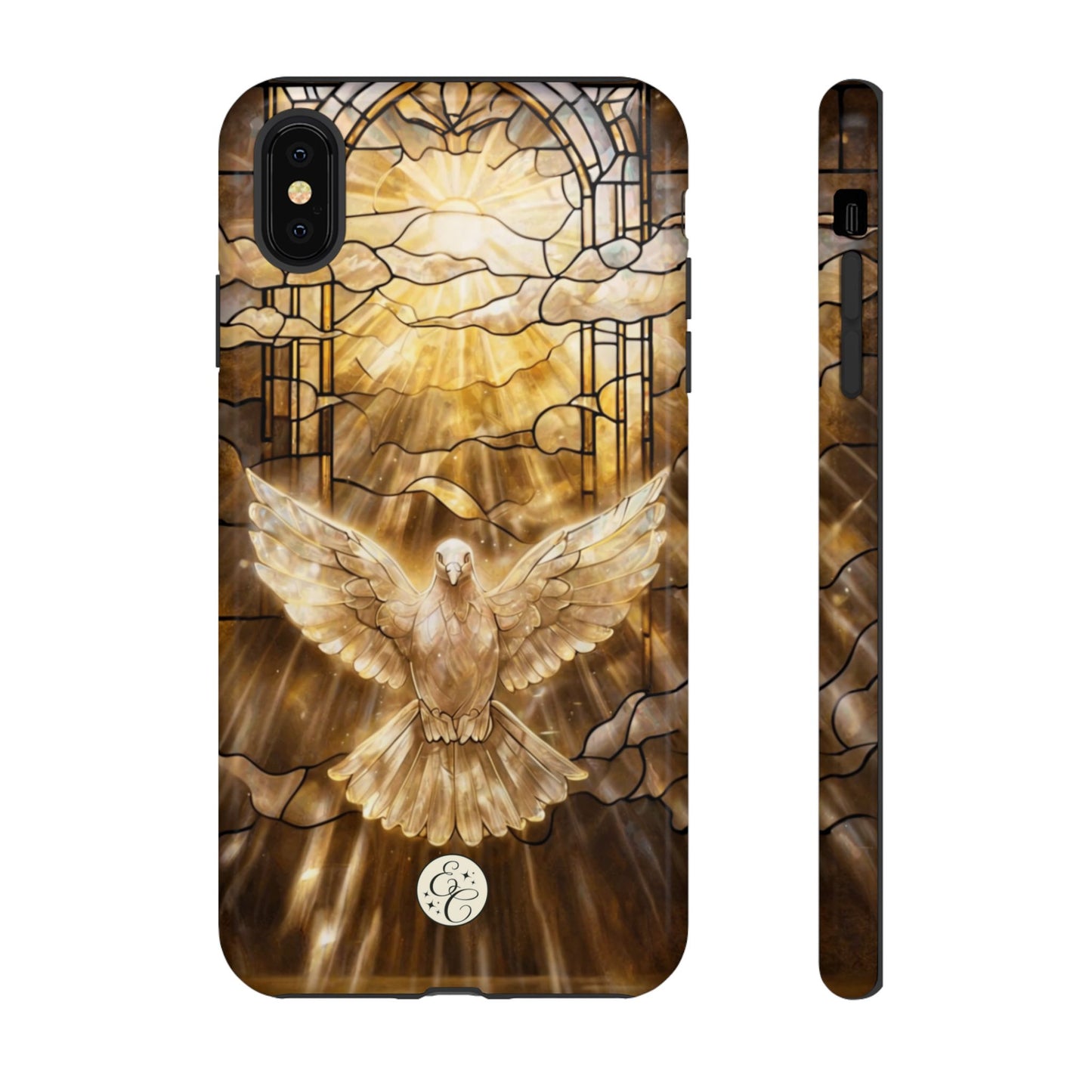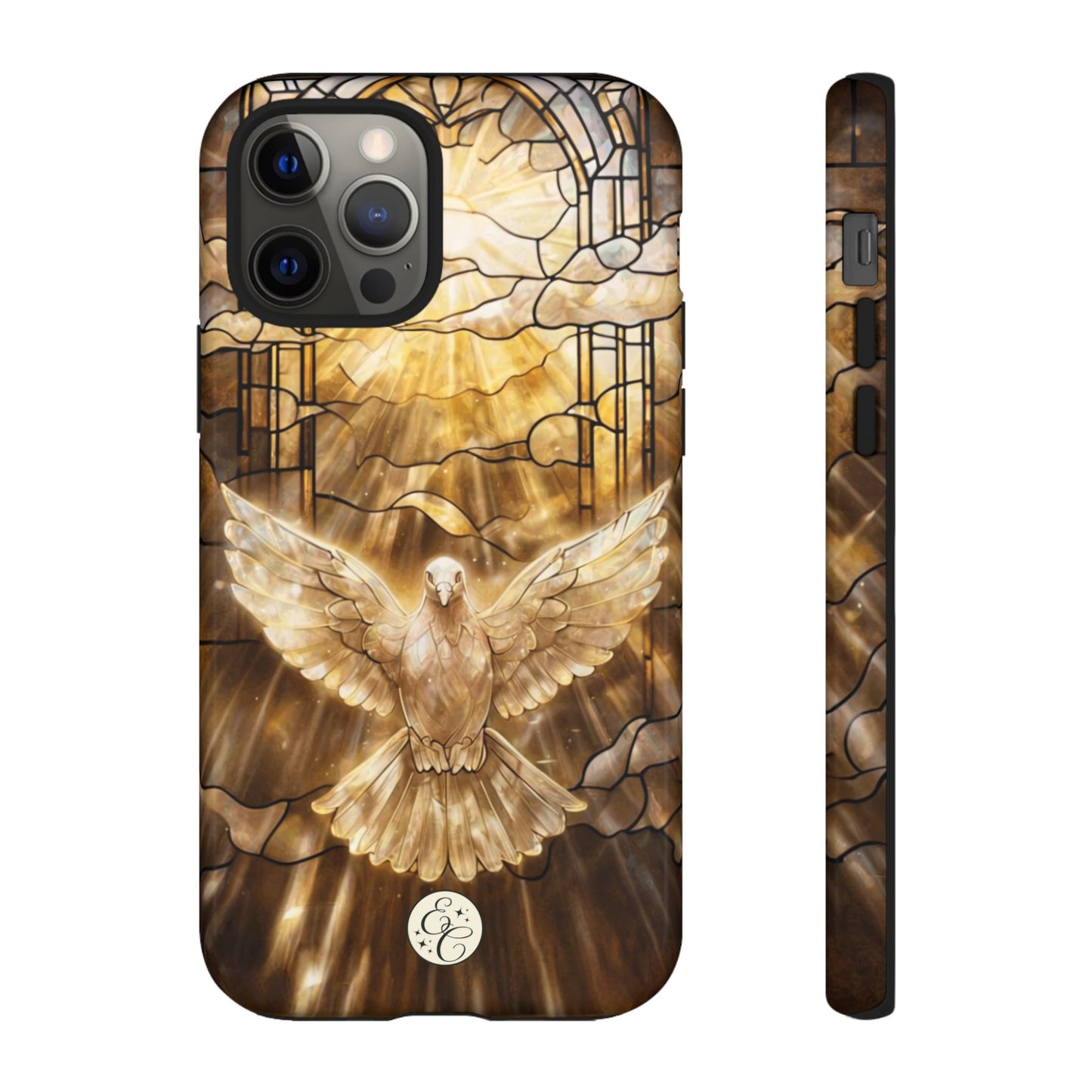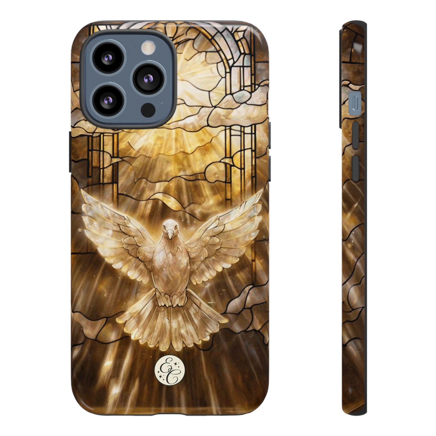 🙏Let your faith shine with this breathtaking Holy Spirit phone case, inspired by stained glass windows and heavenly light. The golden glow, radiating sunbeams, and majestic dove descending from above represent peace, guidance, and divine presence.