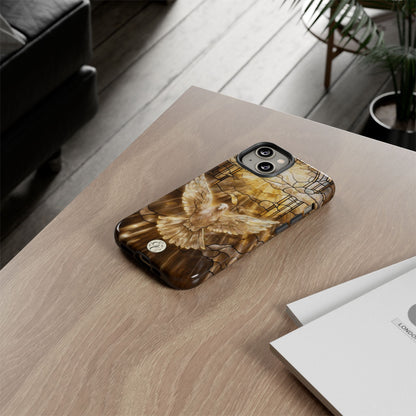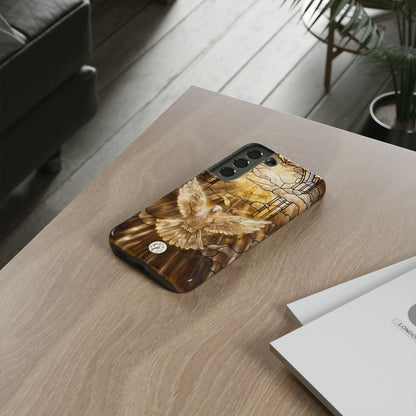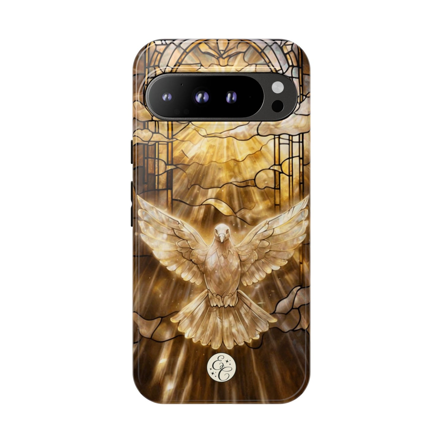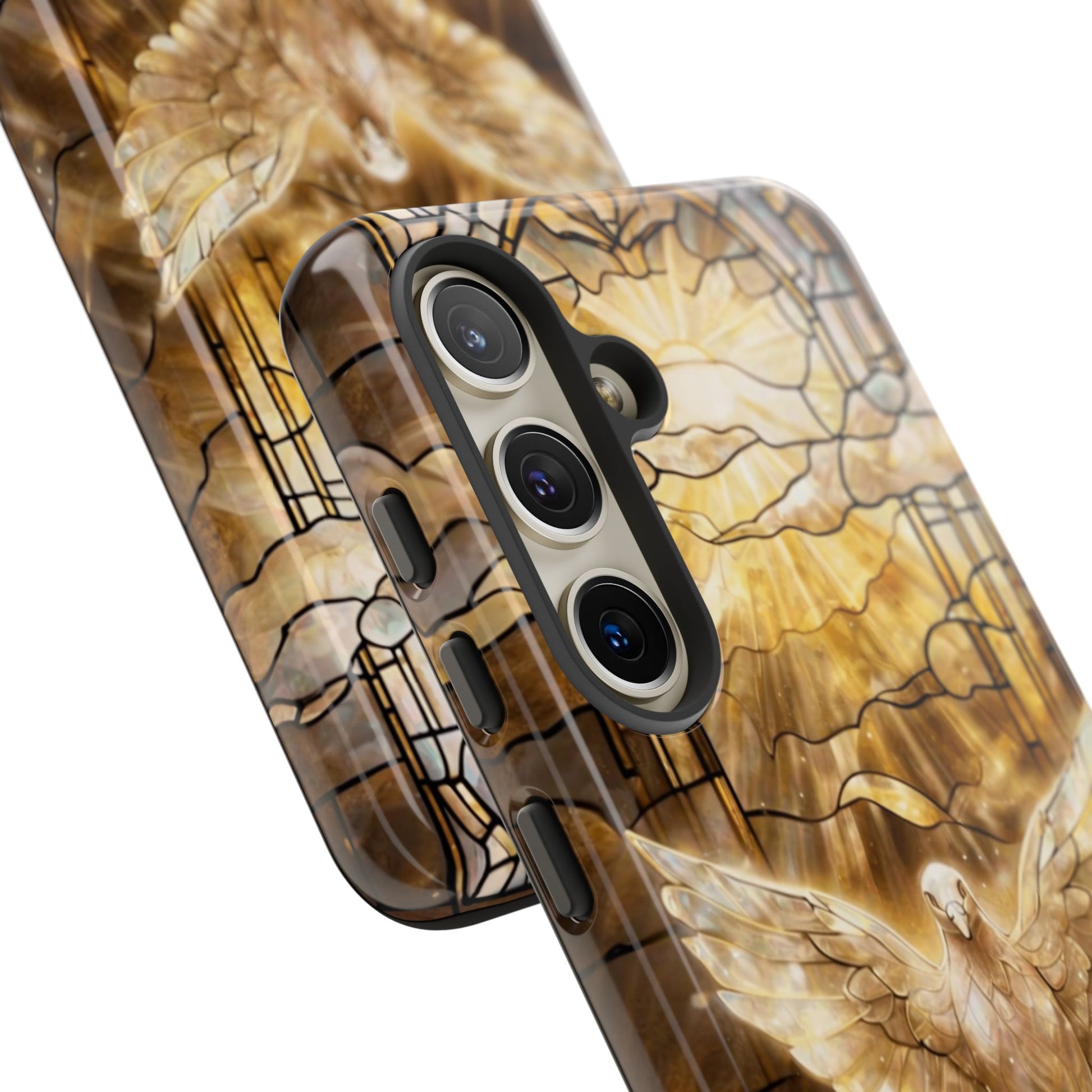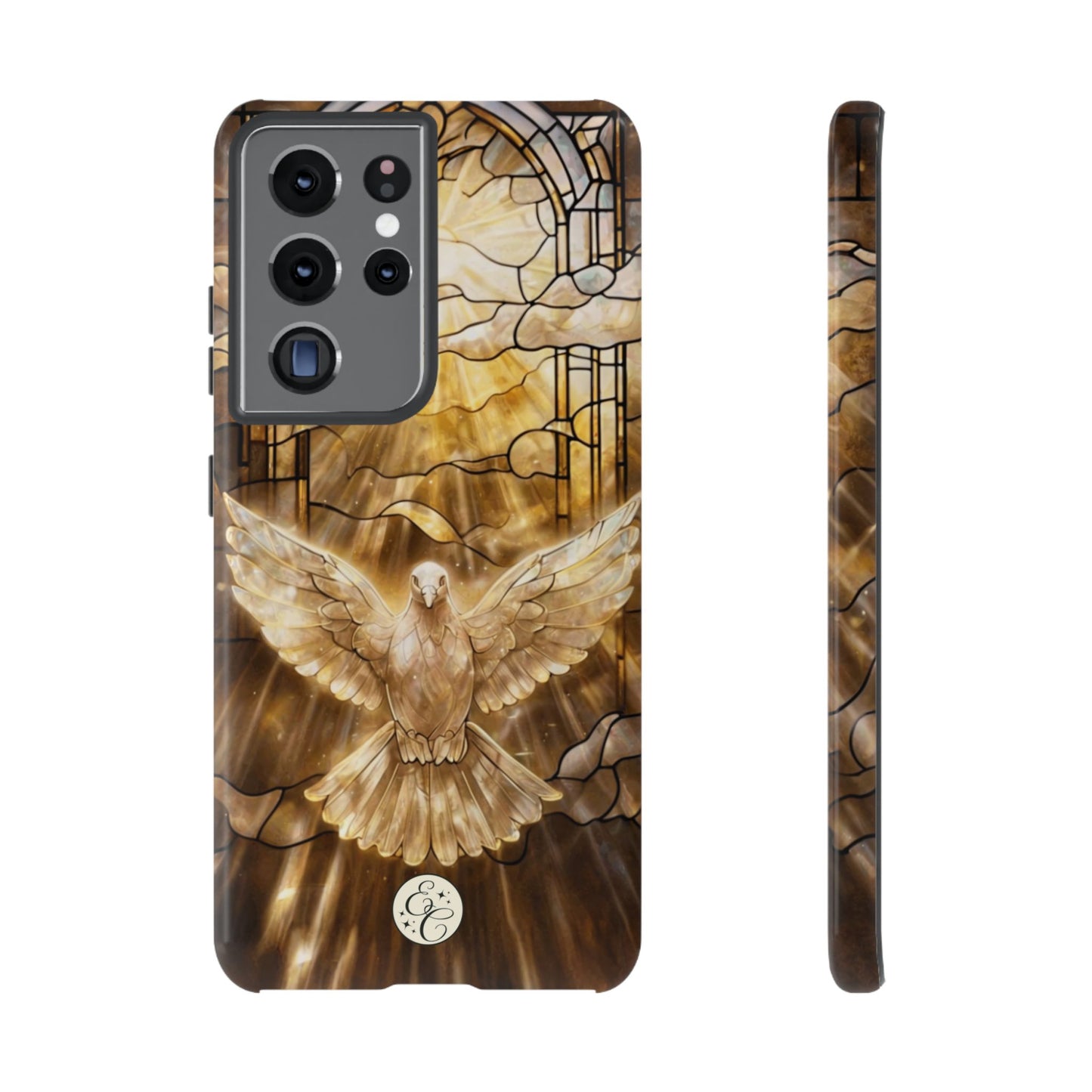 🙏Let your faith shine with this breathtaking Holy Spirit phone case, inspired by stained glass windows and heavenly light. The golden glow, radiating sunbeams, and majestic dove descending from above represent peace, guidance, and divine presence.