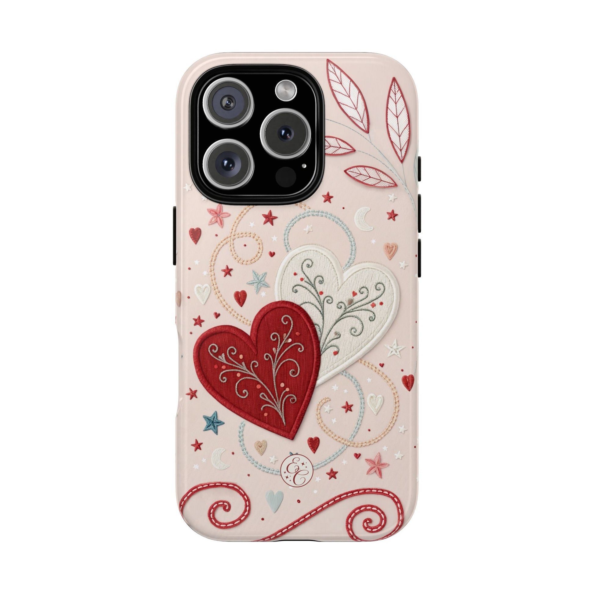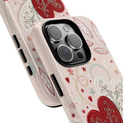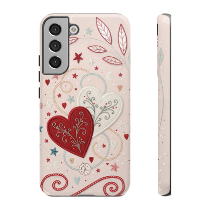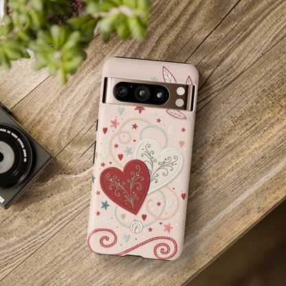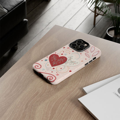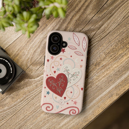 📱💖Celebrate love with this romantic Valentines Day phone case featuring interlinked hearts and whimsical stars and swirls. Perfect for gifting your special someone!💘✨