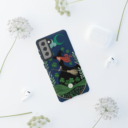 ✨🍀 Embrace the magic of the Emerald Isle! 🍀✨ Adorn your phone with this enchanting Irish witch, strolling through lush green fields under a crescent moon, her broomstick in hand, surrounded by swirling shamrocks. 🌙✨ Perfect for St. Patrick's Day or simply adding a touch of whimsy and luck to your daily style, this phone case brings an irresistible charm to your device. 📱🌿