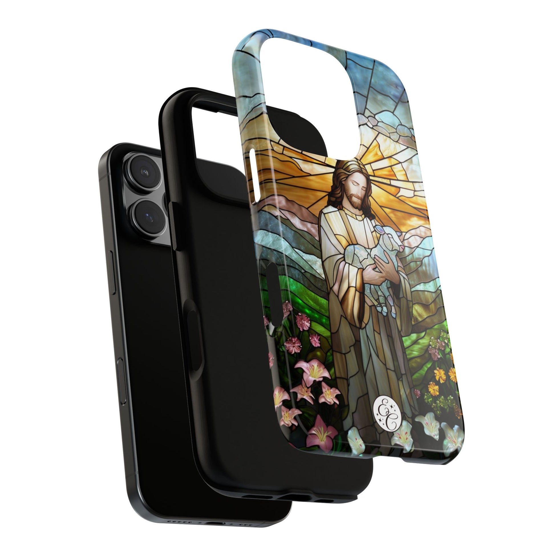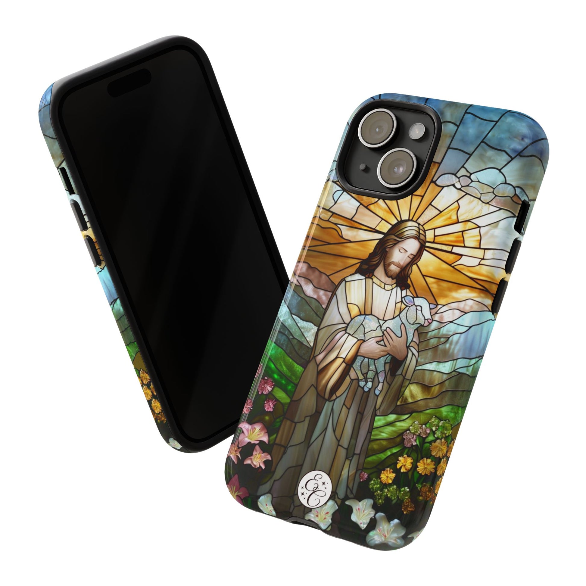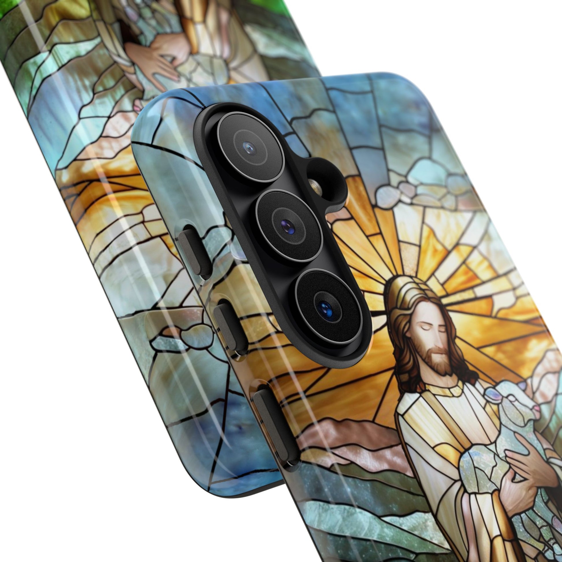 🙏✨Carry a beautiful symbol of faith with this Jesus Holding a Lamb Stained Glass Tough Phone Casee, inspired by traditional church window art.