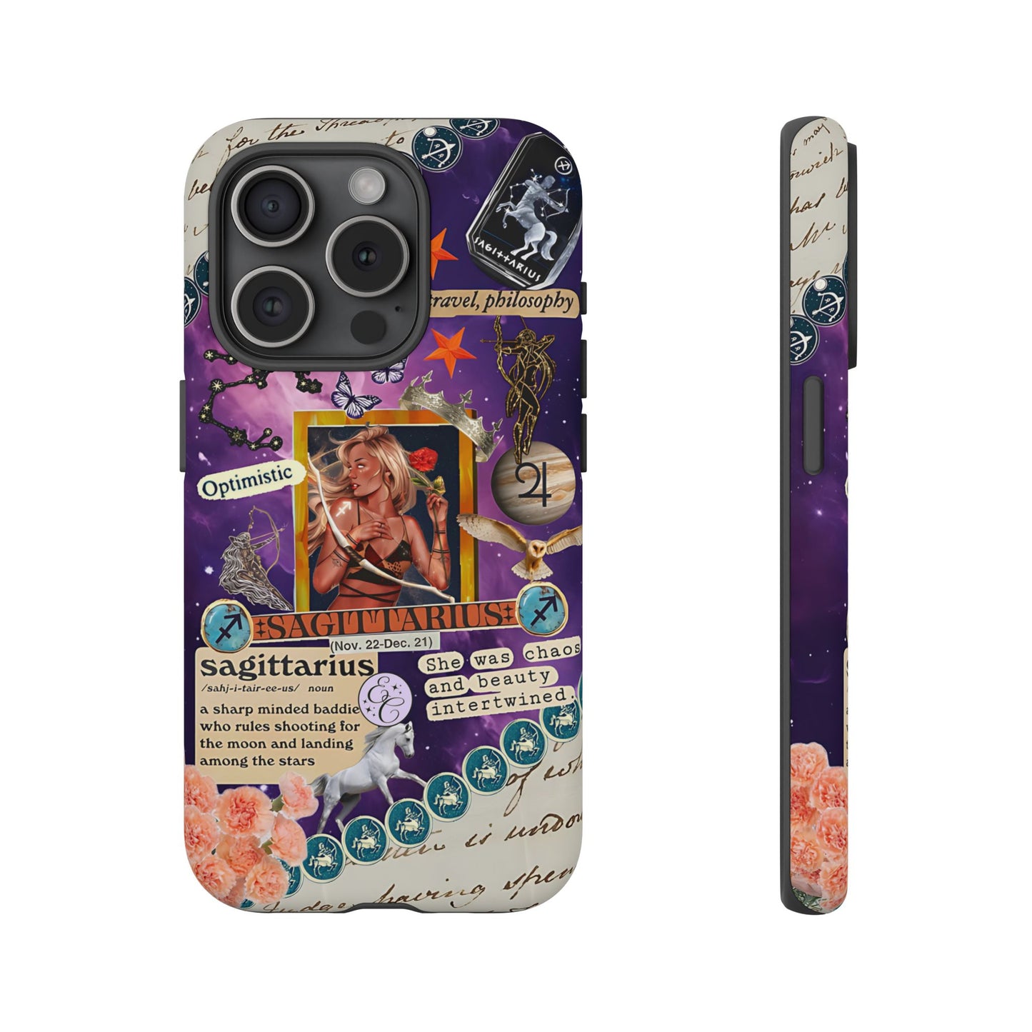 📱✨ Embrace your Sagittarius spirit with this vibrant collage art phone case! Featuring astrological symbols and zodiac elements, it's perfect for astrology lovers. A great gift idea for anyone born between November 22nd and December 21st! ✨