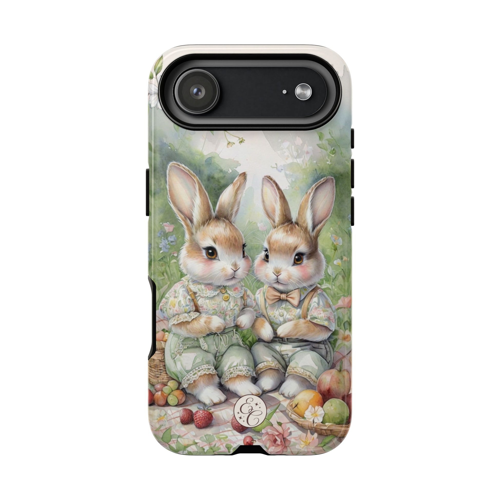 🐰✨ Bring a touch of spring charm to your phone with this Vintage Bunny Picnic Tough Phone Case from EnchantCase. Featuring two adorable rabbits enjoying a cozy picnic surrounded by flowers and fruit, this design captures the warmth and joy of the spring season.