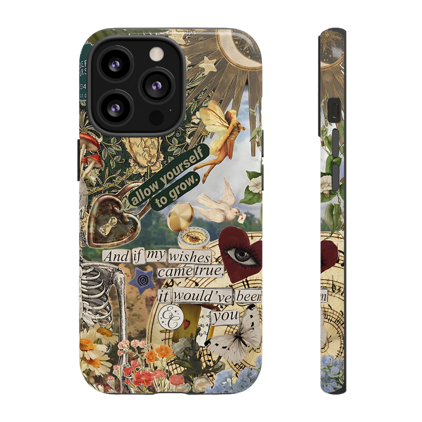 ✨ Featuring vintage aesthetic elements, nature and celestial artwork, and an inspirational quote, this case is a unique accessory that will make your phone stand out. Perfect for those who love a blend of the mystical and natural worlds. 🌙🦋✨