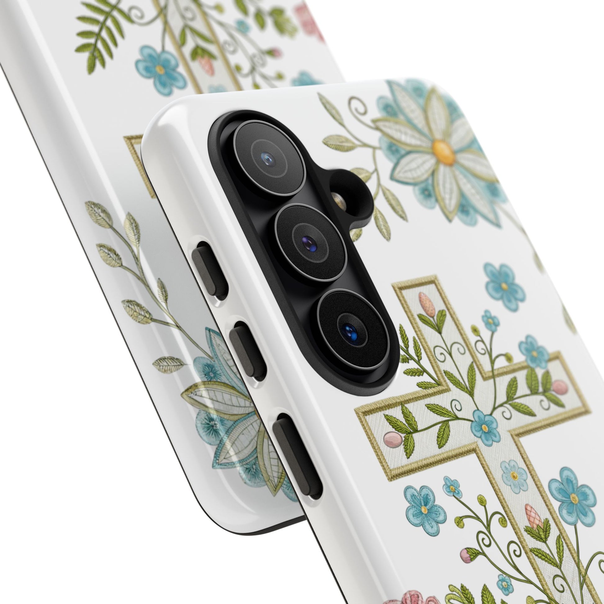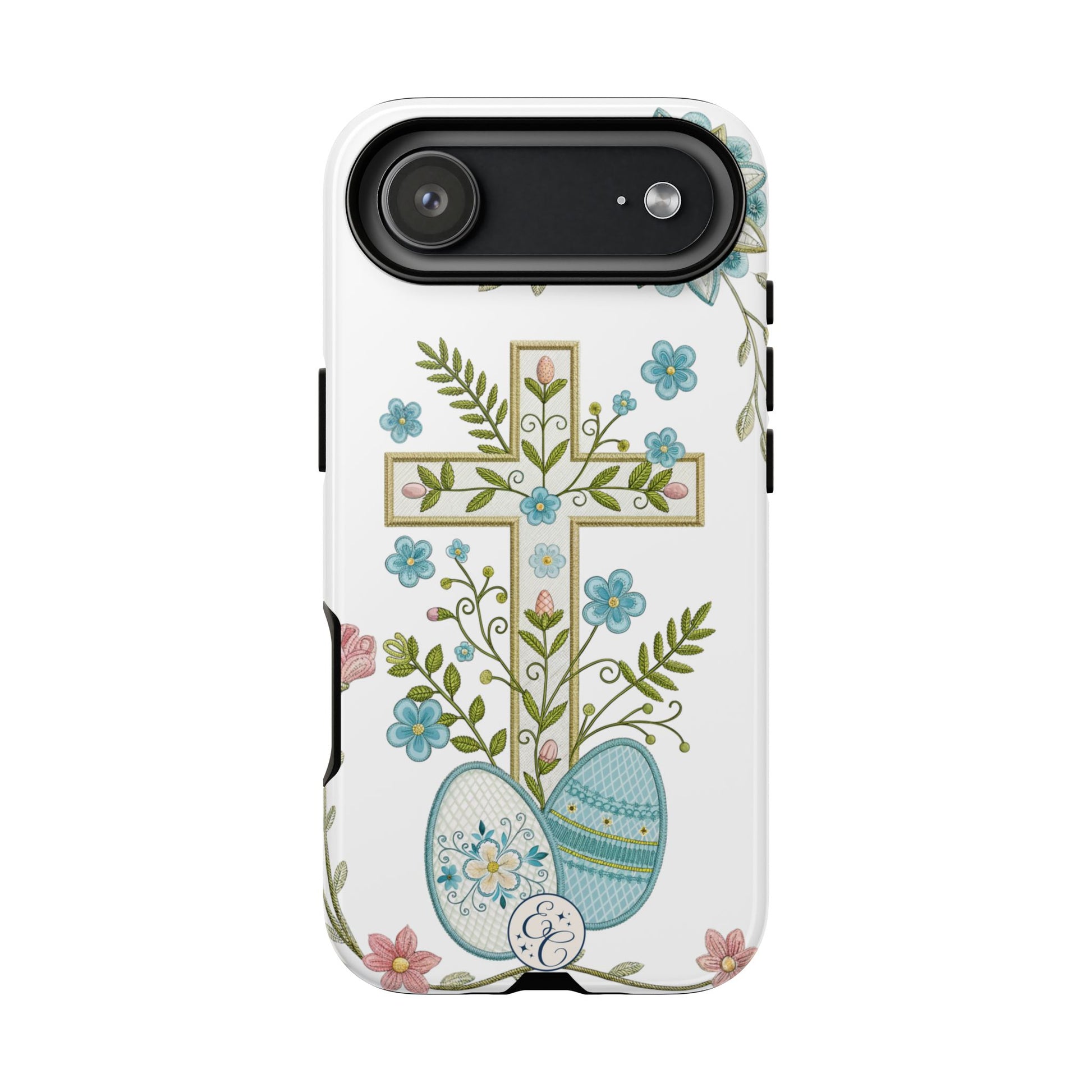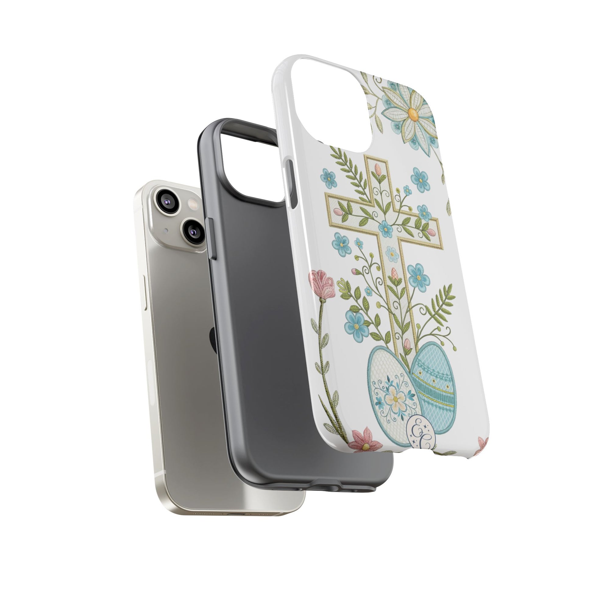 Ideal for those searching for an Easter Christian phone case, floral cross iPhone cover, religious spring phone case, or faith-based Easter gift.