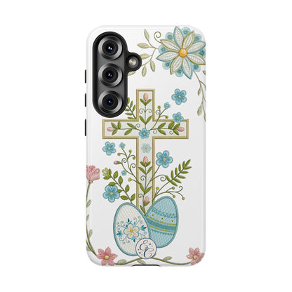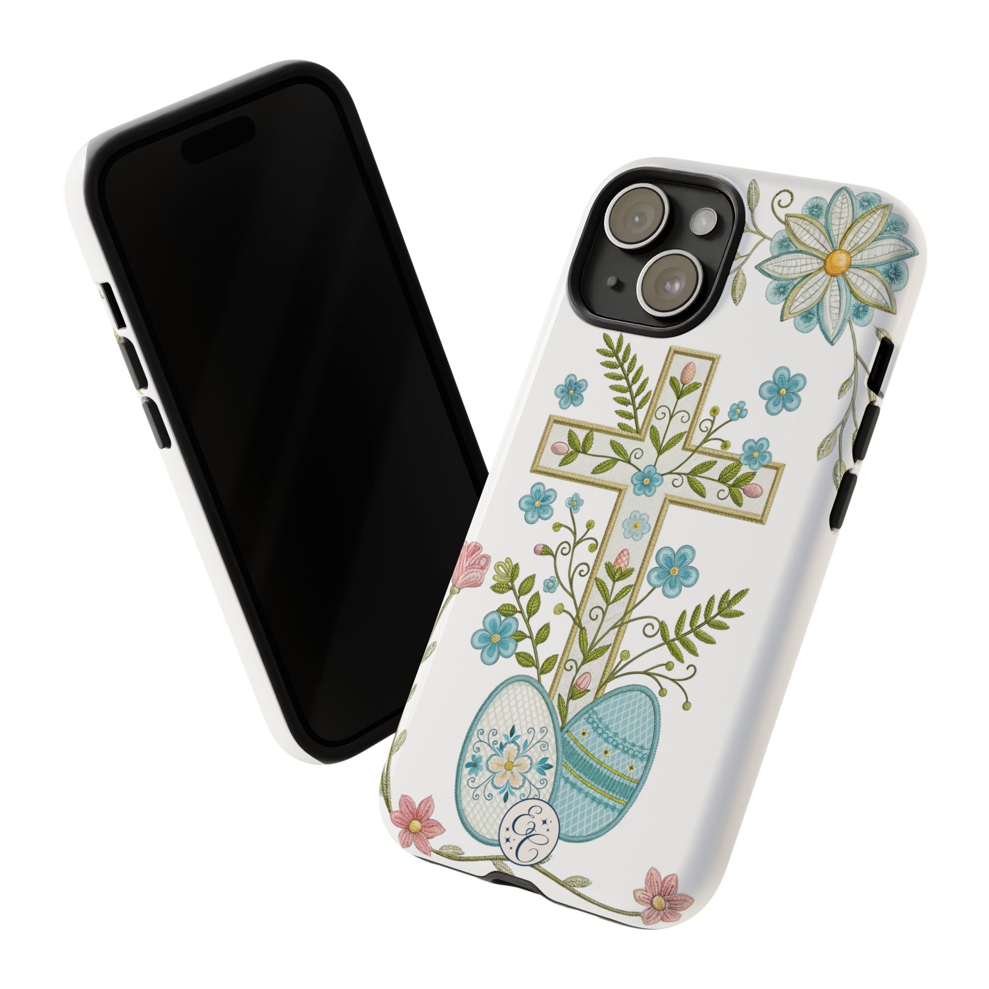 🌿✨ Celebrate the beauty of Easter with this elegant religious phone case featuring a vintage-inspired floral cross and Easter eggs. The intricate design showcases delicate blue flowers, greenery, and pastel tones, creating a peaceful and faith-filled aesthetic. Perfect for those who want to carry a Christian Easter message wherever they go! ✨🌿