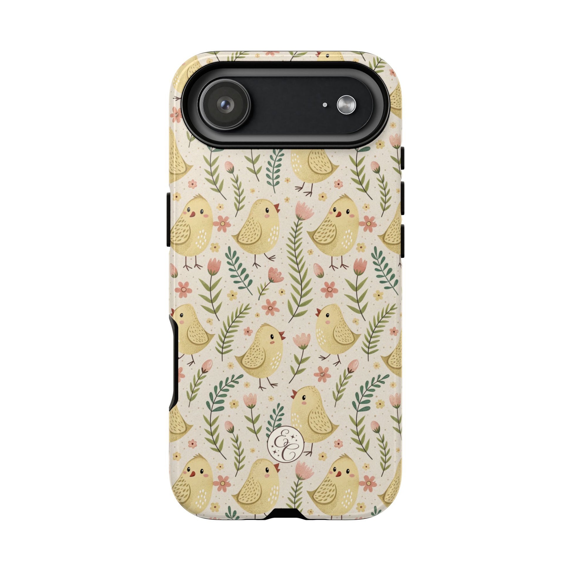 🌸✨Brighten up your phone with this Vintage Floral Chick Pattern Tough Phone Case from EnchantCase, featuring a charming pattern of small chicks surrounded by delicate flowers and greenery. This design perfectly captures the cheerful spirit of spring and Easter.