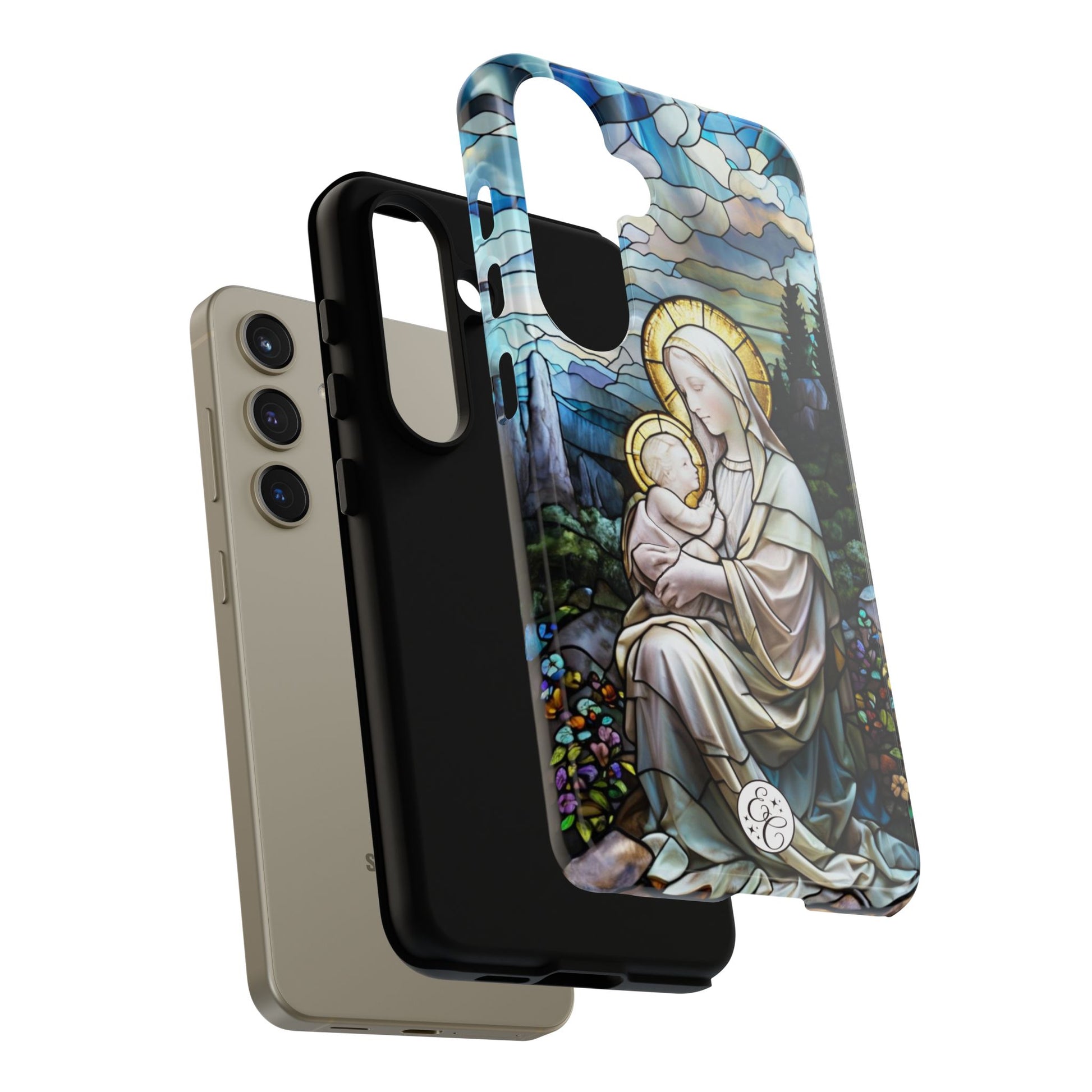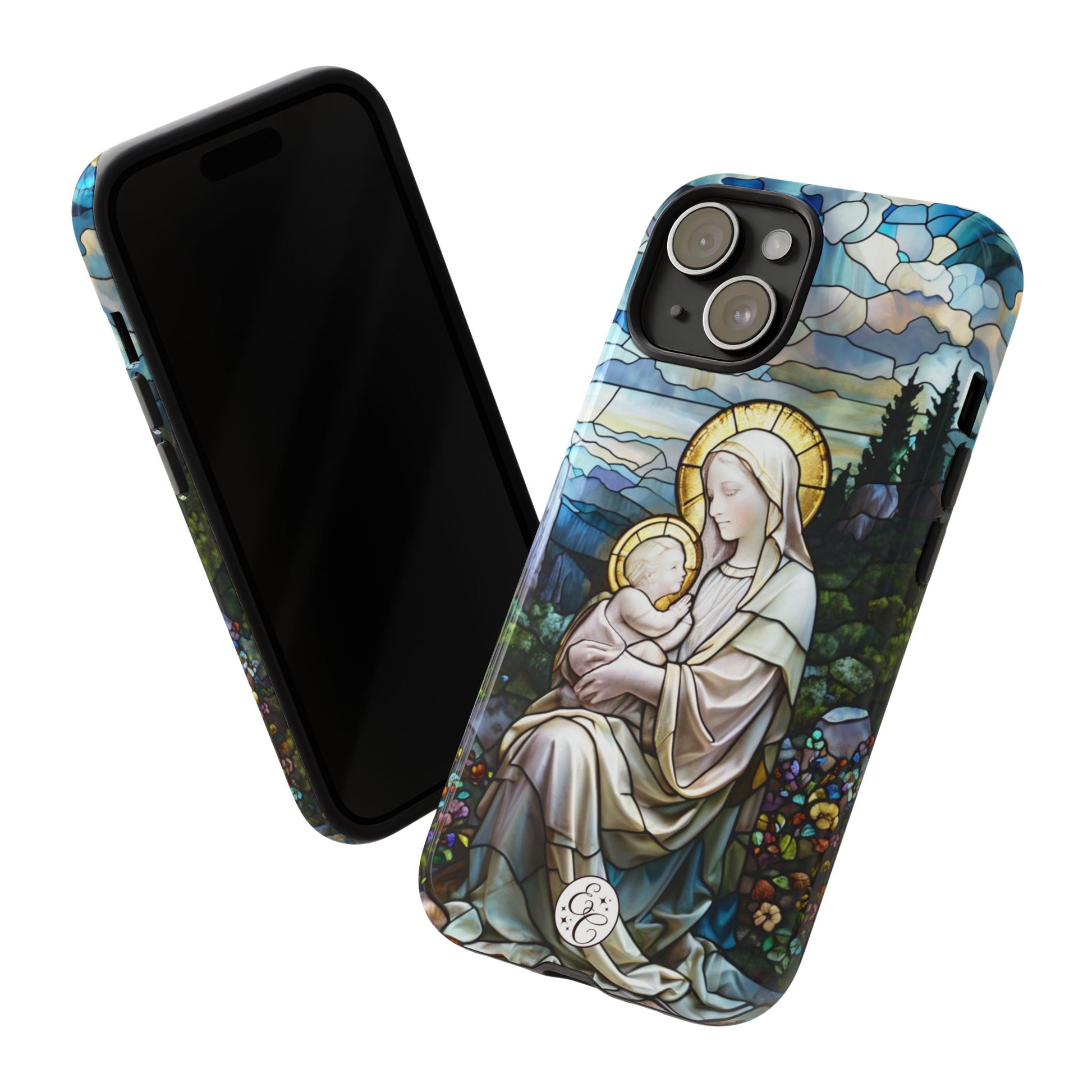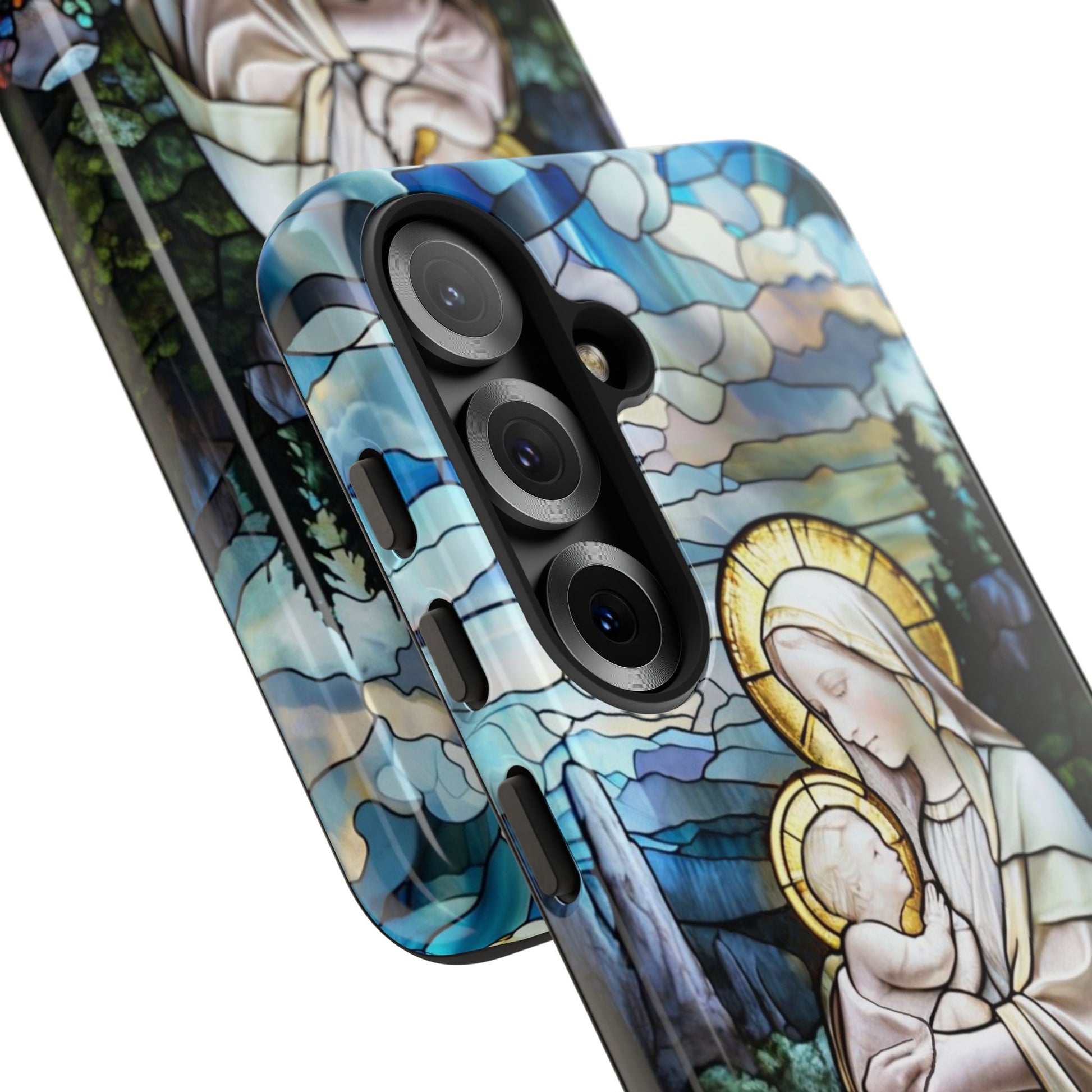🙏Express your faith beautifully with this Virgin Mary with Baby Jesus Stained Glass Phone Case by EnchantCase 🙏