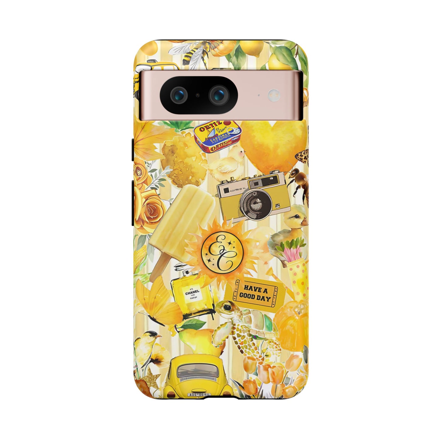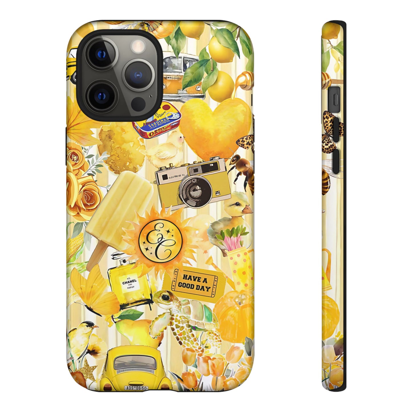 ✨Brighten up your phone with our vibrant yellow collage phone case! 🌼 Featuring classic yellow taxis, luscious fruit, charming flowers, and a vintage camera, this case brings a cheerful vibe to your device. Perfect for adding a pop of color and a touch of whimsy to your everyday style. Ideal for photography lovers and vintage enthusiasts alike! 🎁📷